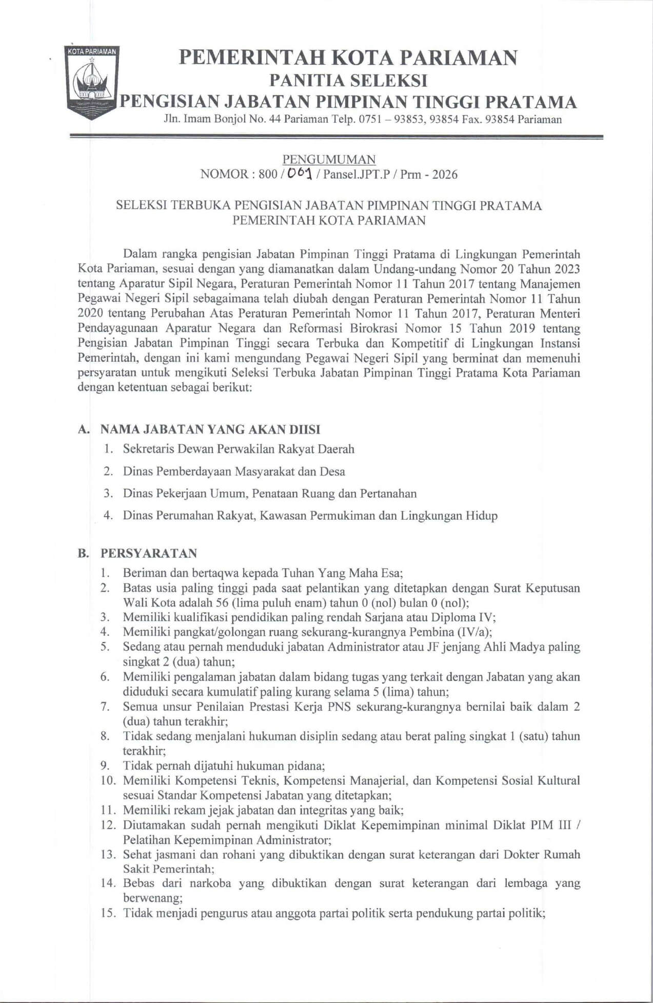 Hak Cipta © 2026 Badan Kepegawaian dan Pengembangan Sumber Daya Manusia Kota Pariaman